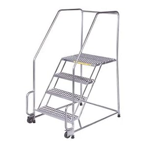 2 Step 16"W Stainless Steel Tilt and Roll Ladder - Perforated Tread This heavy duty type T304 stainless steel ladder is perfect for the shop floor or any corrosive or wet environment. Tilt and Roll ladders are ideal for any application where having 4 feet firmly on the floor is desirable. Simply tilt the ladder onto 2 high quality 4" casters (not stainless), providing easy maneuverability. Mill Finish not recommended for clean room applications. Built to OSHA and ANSI standards. 20"Wx24"D base dimensions. 16"Wx10"Dx19"H top step dimensions. 49.00 L. 24.00 W. 20.00 H.