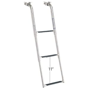 Designed to help conserve space, this Windline telescoping ladder is also simple to use with no complicated folding. Made of heavy-wall, electropolished, stainless steel tubing to prevent corrosion, this ladder has no springs or hinges to break or pinch. Features Windline's lifetime warranty. 400-lb. capacity. Stainless-steel steps with low-profile, nonskid plastic thread. 37'L x 11'W. 18'L when stowed. Mounting hardware not included.